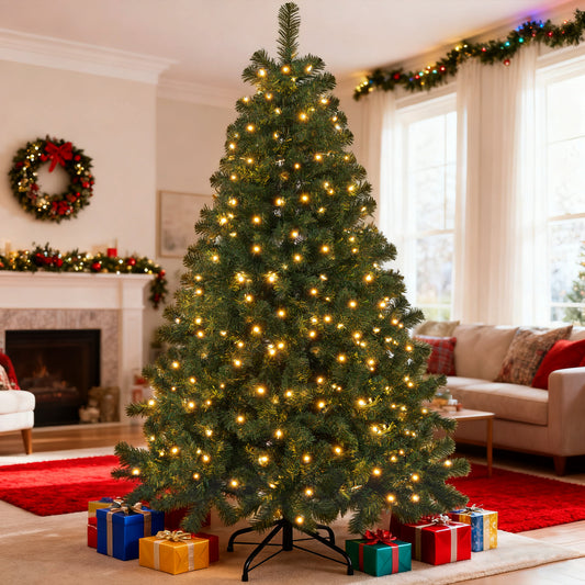 OGEDNAC Pre-Lit Christmas Tree, 4ft Artificial Green Xmas Tree with Multi-colored 150 LED Lights & Metal Stand, 360 Lifelike Branch Tips