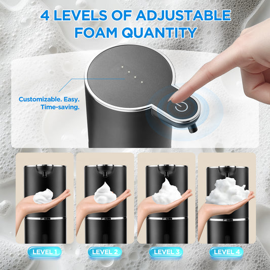 Automatic Soap Dispenser, Touchless Foaming Soap Dispenser 380ml USB Rechargeable Dispenser Electric Wall Mounted 4levels Adjustable Foam Dispenser Pump for Bathroom Kitchen Dish Soap, Black