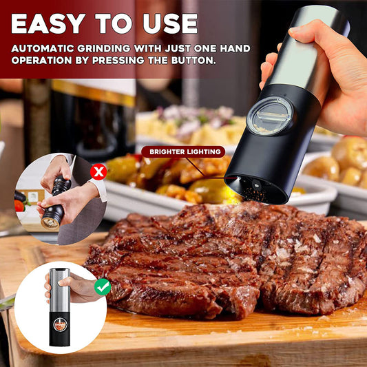 Electric Salt and Pepper Grinder Set, OGEDNAC Automatic Electronic Spice Mill Shakers with USB Rechargeable, LED Light, Adjustable Coarseness, One Hand Operated, Stainless Steel