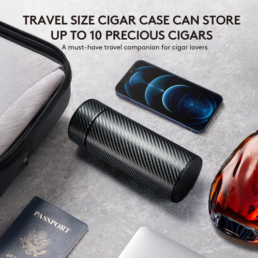 Cigar Humidor Case for Travel, OGEDNAC Humidor Jar with Cedar Wood Lining Built in Hygrometer & Humidifier, Holds 8-10 Cigars, Carbon Fiber Textured