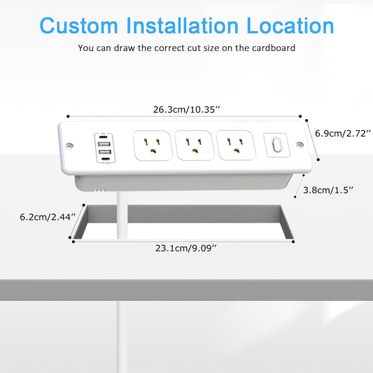 Recessed Power Strip, Furniture Desk Drawer Outlet with 2 USB-C & 2 USB-A, Plug in 3 Outlets, Flush Mount 5.6FT Bold Extension Cord Conference Desk Outlet Fast Charge for Home Office, White