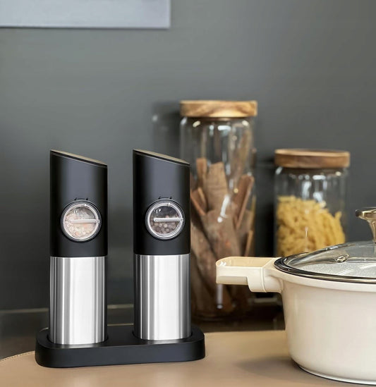 OGEDNAC Electric Salt and Pepper Grinder Set, Automatic Salt & Pepper Mill with USB Rechargeable Charging Base, Electric Salt and Pepper Grinder Mill with Led Light and 5 Adjustable Coarseness